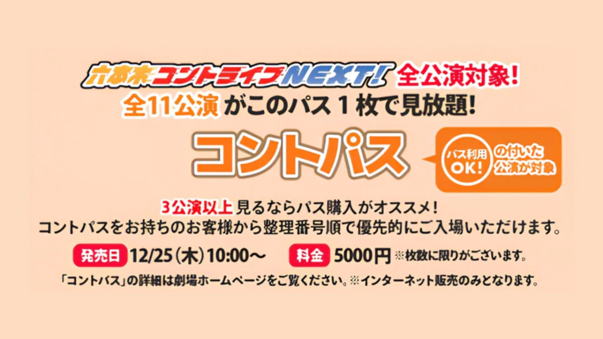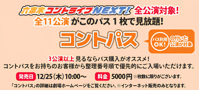 2月に開催する「六本木コントライブNEXT!」の 全11公演を5000円で見れちゃう