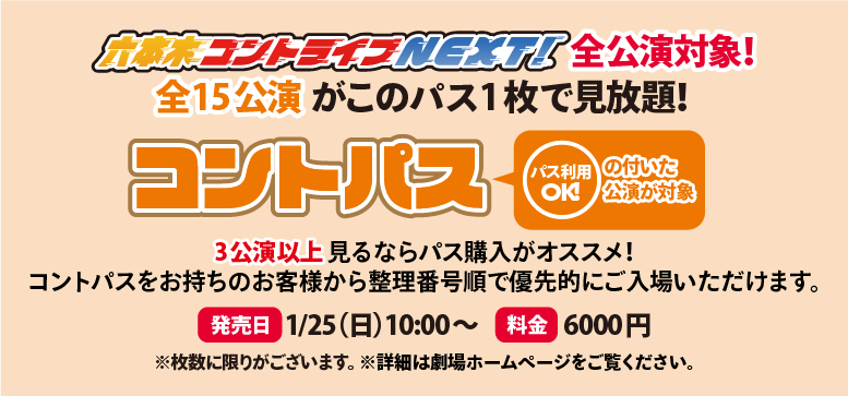 3月に開催する「六本木コントライブNEXT!」の 全15公演を6000円で
