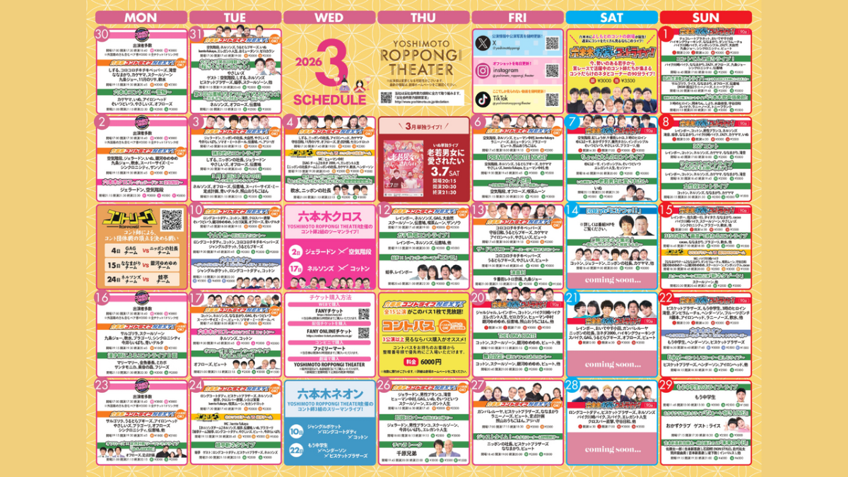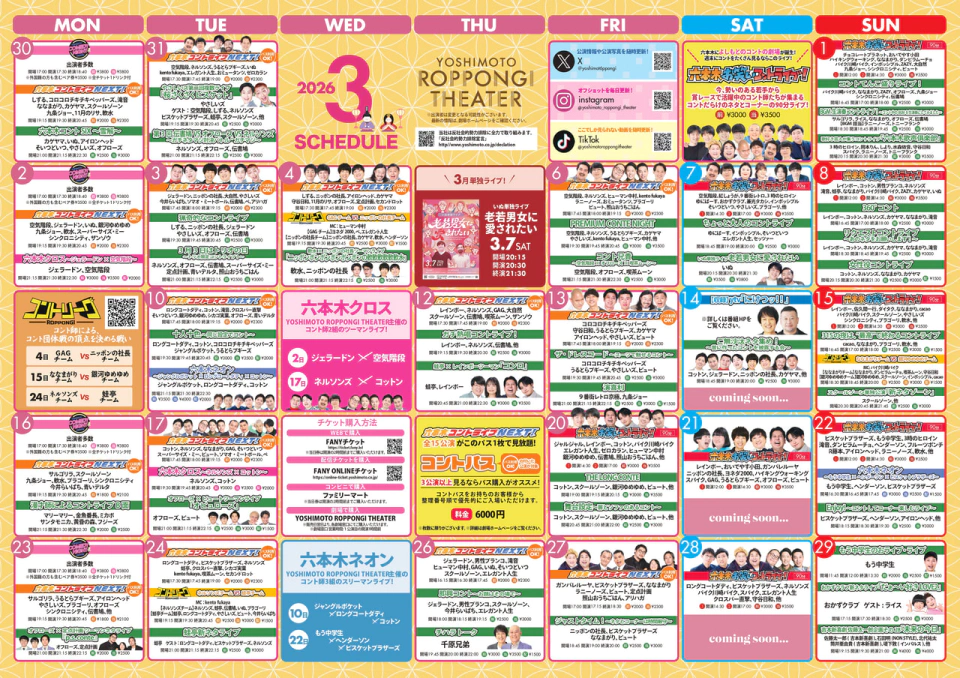 3月月間スケジュール「YOSHIMOTO ROPPONGI THEATER」