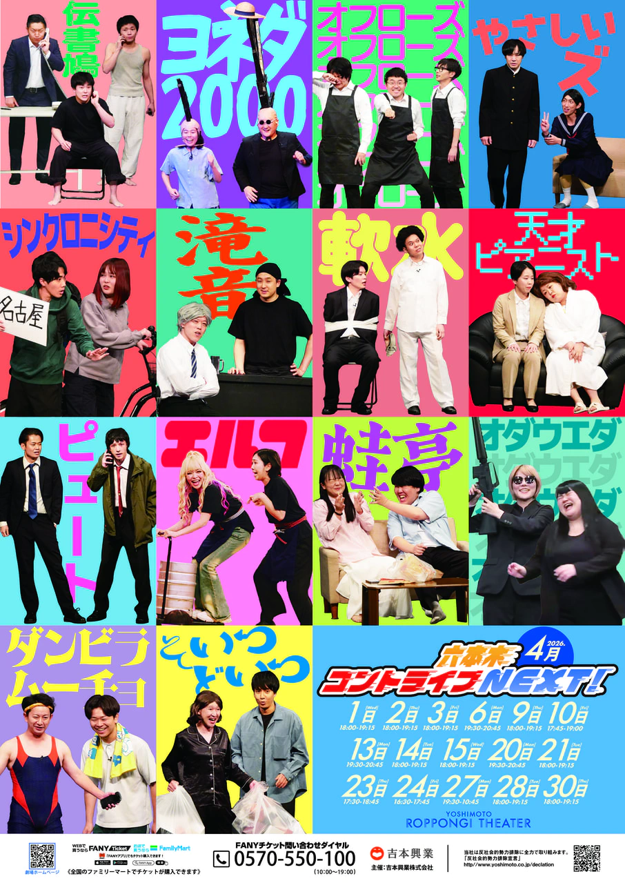 ※最新の出演者情報・終演時間など詳細はYOSHIMOTO ROPPONGI THEATERホームページでご確認ください。