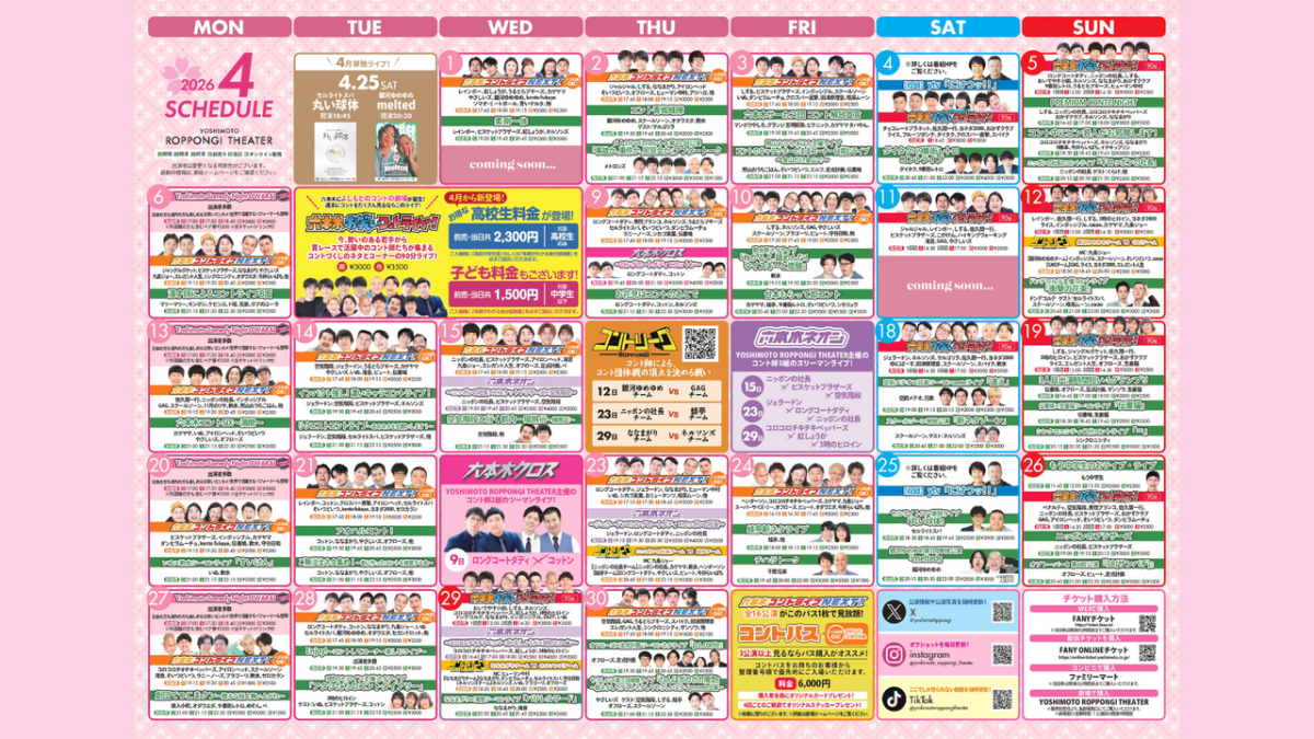 4月月間スケジュール「YOSHIMOTO ROPPONGI THEATER」