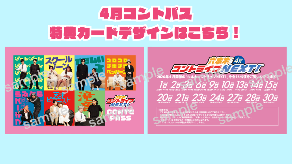 4月に開催する「六本木コントライブNEXT!」の 全16公演を6000円で見れちゃうフリーパスチケット!